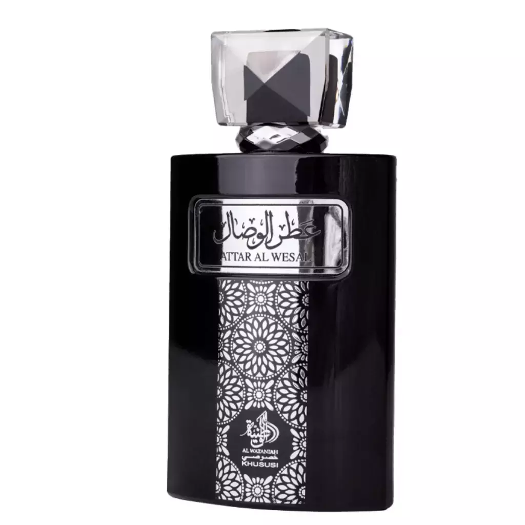 Attar Al Wesal de Al Wataniah é um perfume Âmbar Especiado Compartilhável. Attar Al Wesal foi lançada em 2020. As notas de topo são: Pera, Lavanda, Hortelã, Bergamota e Limão. As notas de coração são: Canela, Cominho e Sálvia Esclaréia. As notas de fundo são: Casca de Baunilha Negra, Âmbar, Patchouli e Cedro.